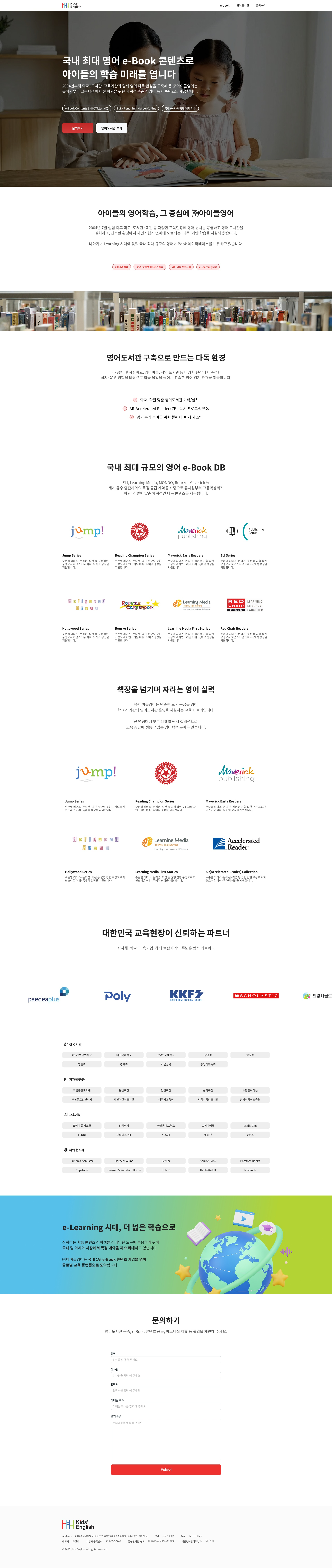 - 카테고리별 콘텐츠(유아, 초등, 중등, 고등) 및 대표 e-Book 시리즈 전시